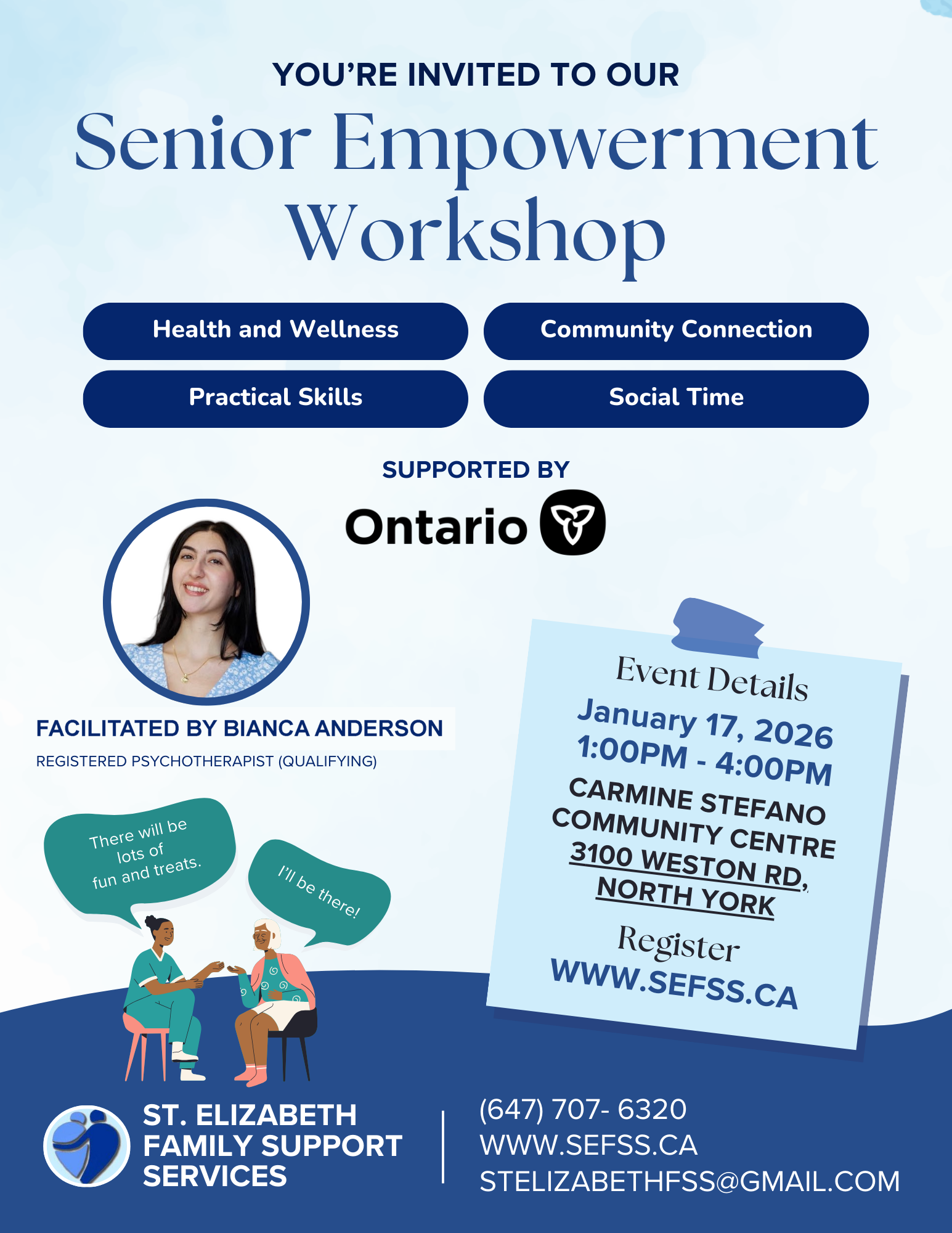 St. Elizabeth Family Support Services (SEFSS) is a Registered Canadian Charity under the Canada Revenue Agency. SEFSS provides services for individuals and families who are experiencing personal and social problems. Our primary service area is the Jane Street and Sheppard Avenue West area of Downsview in North York (Toronto), Ontario. | ||